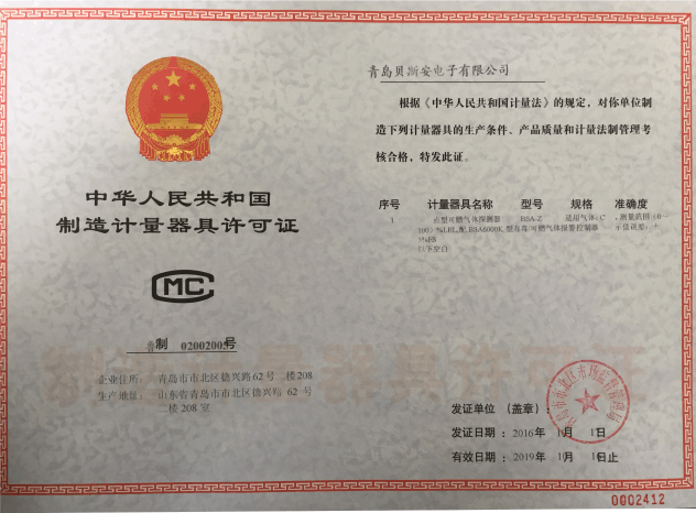 我公司是青島市具有國家質(zhì)量技術(shù)監(jiān)督部門頒發(fā)的計(jì)量器具生產(chǎn)許可證的生產(chǎn)企業(yè);獲得國家防爆電氣產(chǎn)品質(zhì)量監(jiān)督檢驗(yàn)中心頒發(fā)的防爆合格證;獲得國家公安部消防產(chǎn)品合格評定中心頒發(fā)的消防產(chǎn)品形式認(rèn)可證書。